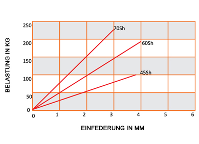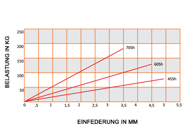 Gummi: Naturkautschuck mit Härte 45° - 60° - 70° Shore